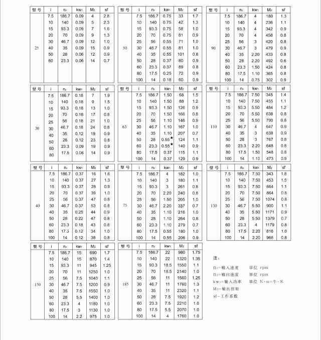 RV减速机性能参数